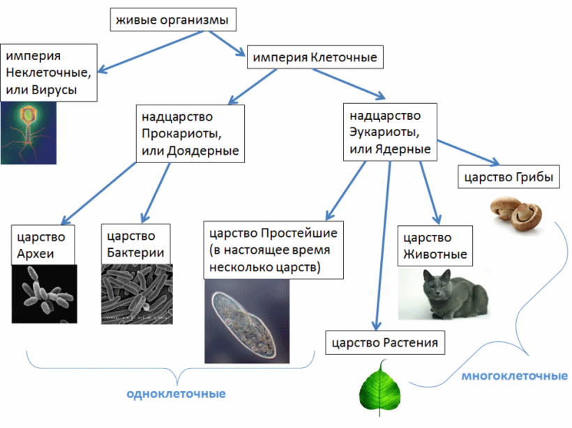 Есть такая наука — систематика, которая и занимается кропотливой работой по систематизации всего живого. Ученые-систематики выделяют все живое в 4 царства: