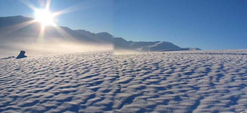 Еще хочется добавить, что на этом континенте существует полярный день и полярная ночь, которые длятся по полгода. В полярную ночь температура воздуха резко падает, а ветер усиливается. Кроме того, площадь полюса возрастает практически в два раза из-за образовавшегося ледяного покрова.