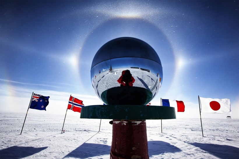 Кроме того, в Южном полушарии существует еще один интересный полюс — церемониальный. Это определенная область, на которой ведутся фотосъемки на станции Амудсен-Скотт. Чем это место так интересно? Все дело в том, что каждый год точка смещается в среднем на 10 метров от географического полюса, что обусловлено движением ледникового покрова.