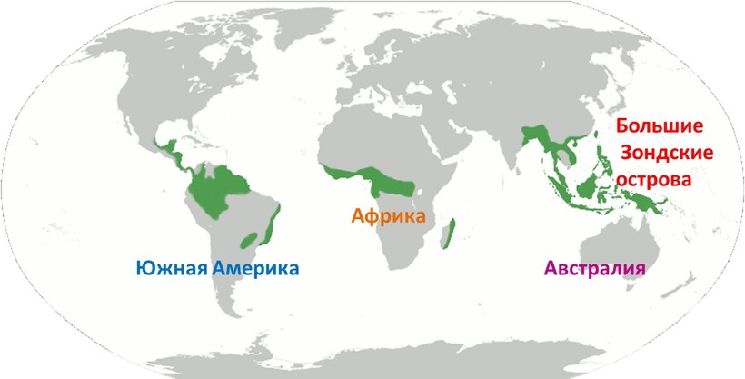 Экваториальный пояс богат своими тропическими лесами. Это дом для многих видов флоры и фауны. Разнообразие форм жизни поражает. Вспомните африканские джунгли и амазонскую сельву — сколько там необычных и потрясающих животных и растений!