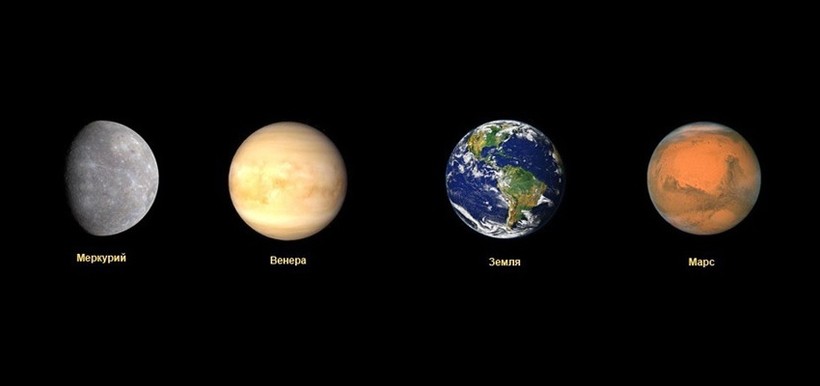Они имеют твердую поверхность. В группу входят первые 4 от Солнца: