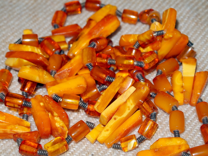 - Лучше всего носить украшения на шеи (колье, бусы, подвесы с янтаря). Потому что янтарь благоприятно будет влиять на работу щитовидной железы.