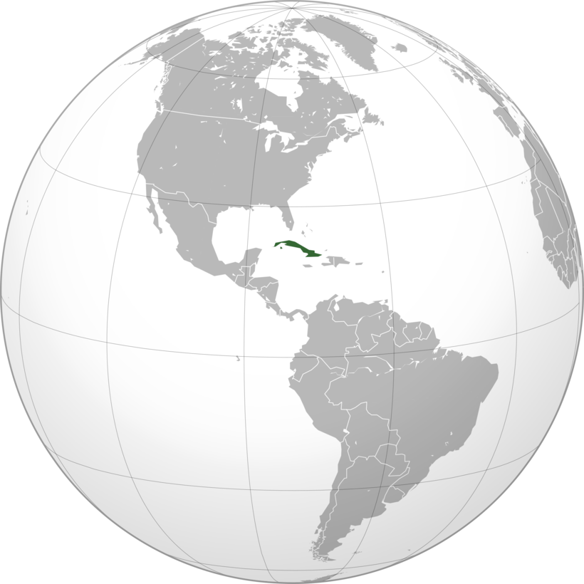 Все они находятся в бассейне Карибского моря, ровно между двумя Америками (зеленым выделена Куба).