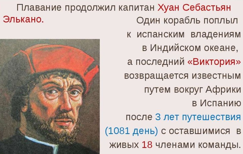 - Элькано стал капитаном одного из 2 уцелевших кораблей, и именно его солидный опыт помог ему совершить переход через Индийский океан, а затем - вдоль Африки.