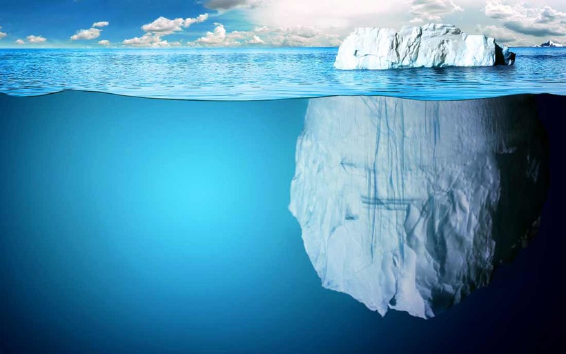 Только представьте, над поверхностью воды видна лишь одна десятая часть всей ледяной глыбы! Вся основная же масса скрыта от глаза наблюдателя. Отсюда и пошла фраза «это всего лишь вершина айсберга», означающая лишь малую видимую часть проблемы.