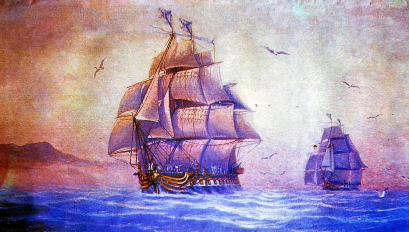 Итак, первыми из наших соотечественников совершили кругосветное путешествие моряки Крузенштерн и Лисянский. Оба были в чине капитан-лейтенанта на момент экспедиции и за их плечами лежало несколько длительных плаваний.