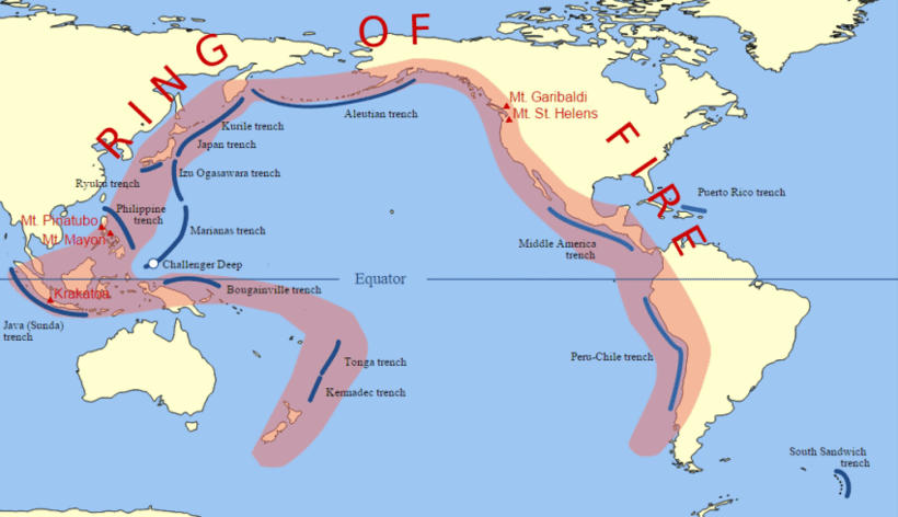 Огненное кольцо. Это название области на стыках континентальных плит. В ее пределах сосредоточена большая часть действующих вулканов нашей планеты, и фиксируется наибольшее количество подземных толчков. Почему же оно вызывает интерес ученых? В первую очередь, фактически 95% всех происходивших землетрясений зафиксировано именно тут, а большая их часть относится к самым сильным в истории нашей планеты. Это прямое свидетельство того, что процесс формирования континентов в этой зоне продолжается по сей день.