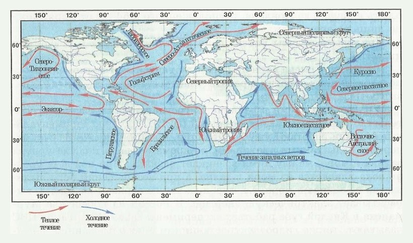 течения на те, что протекают в Северном полушарии и те, что несут свои воды в Южном полушарии.