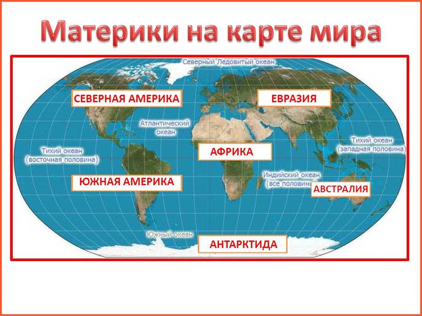 Но в некоторых странах считают, что материков семь (Евразию они разделили на два — Европу с Азией, а у нас так делят только части света).