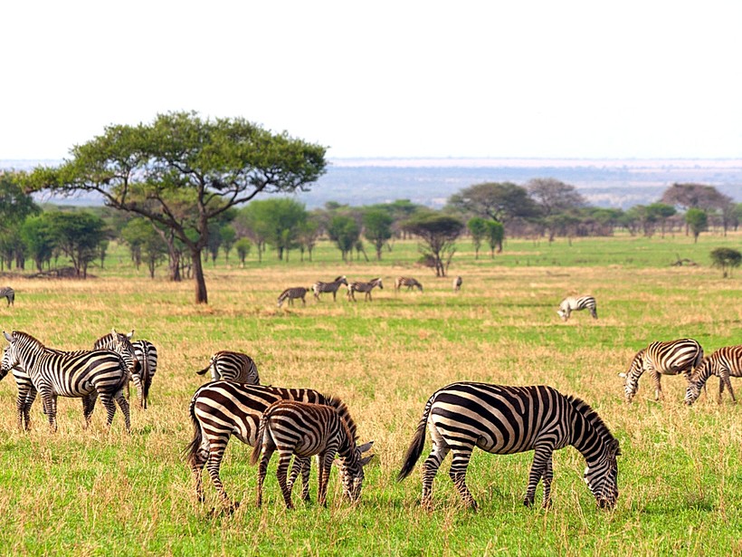 «Бескрайняя равнина» - так переводится «Серенгети», это название верно для любой саванны. Эта равнина в дождливый период заполнена травами всех видов и расцветок. Деревья здесь растут обычно поодиночке. В Серенгети это больше акация (но встречается и баобаб с масличной пальмой) ее крона-зонтик делает пейзаж саванны легко узнаваемым.