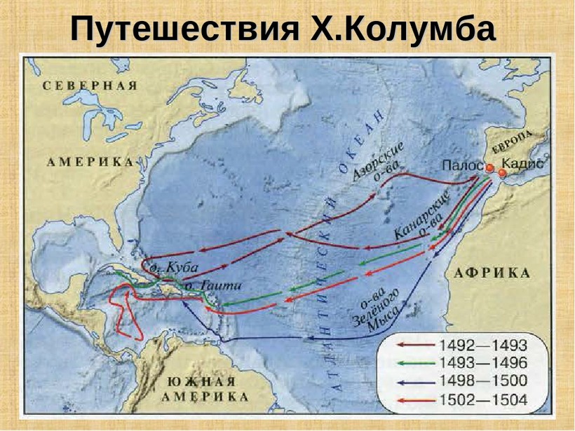Датой открытия Америки принято считать 12 октября того же 1492 г. В тот момент Колумб высадился на берег острова, которому он присвоил название Сан-Сальвадор. На местном наречии эта территория именовалась Гуанахани. Принадлежал остров к гряде Багамских островов. Затем испанцы продолжили свои изыскания. В ходе плавания были открыты следующие земли: