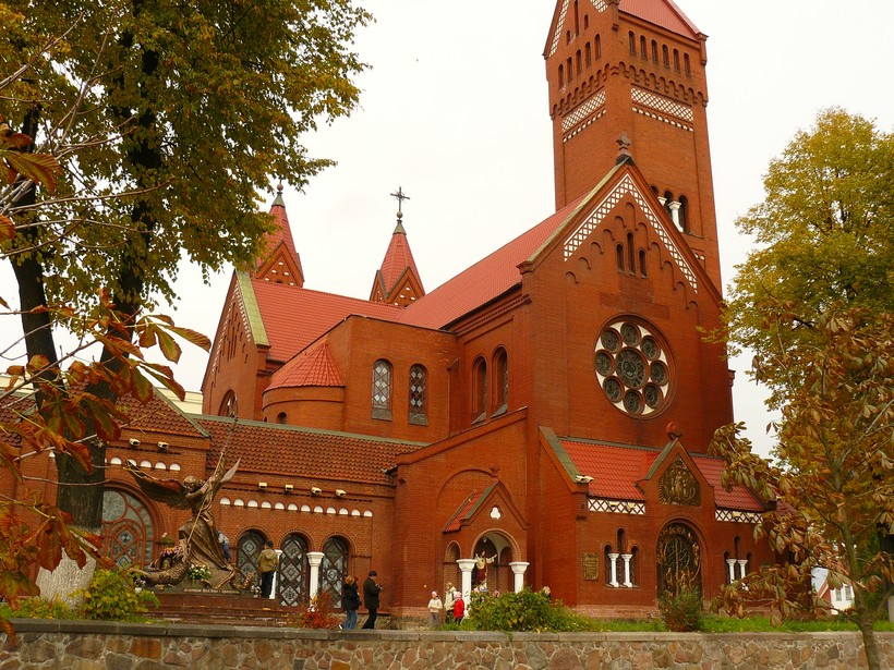 Этот римско-католический храм, расположенный рядом с Площадью Независимости на улице Советской в Минске, является главным храмом для католиков, проживающих на территории Белоруссии. Он также известен как Красный костёл, поскольку построен из красного кирпича. Строительство храма выполнено в нео - романском стиле польскими архитекторами Томасом Пайздерским и Владиславом Маркони, в начале 20 века и спонсировано выдающимся белорусским общественным деятелем Эдвардом Войниловичем. Он решил соорудить Костел в память о своих детях. Интерьер по сравнению со многими итальянскими римско-католическими церквями незамысловатый, что добавляет храму обаяния и простоты.