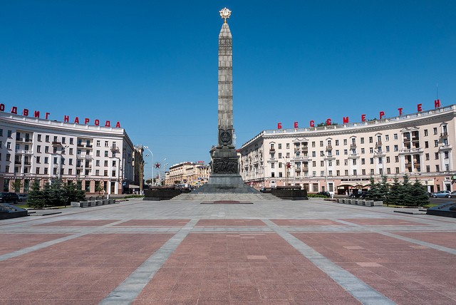 Площадь Победы в Минске является одной из самых известных туристических достопримечательностей Белоруссии, и представляет собой мемориал в память о тех, кто погиб во Второй мировой войне, или как ее знают в Белоруссии – Великая отечественная война. Формально называемая «Круг», она была переименована в 1954 году, когда огромный 40-метровый обелиск был воздвигнут в память о тех, кто отдал свою жизнь на войне. На четырёх гранях постамента размещены бронзовые горельефы, раскрывающие идею памятника: «9 мая 1945 г.», «Слава погибшим героям», «Советская армия в годы Великой Отечественной войны», «Партизаны Белоруссии».