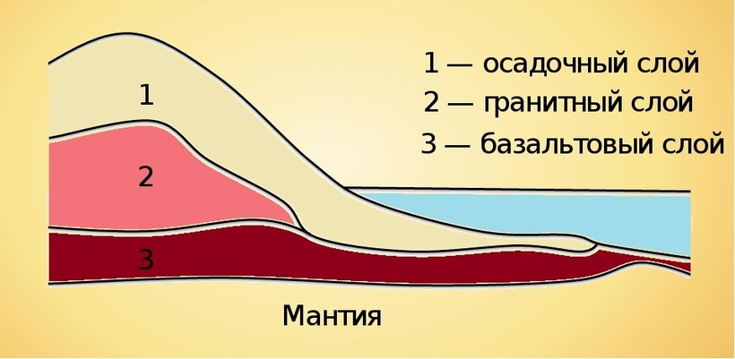 Континентальная кора имеет в составе три основных слоя, расположенных пластами: