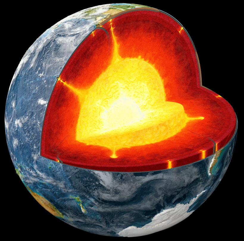 - В самом центре Земли находится плотное раскаленное ядро.