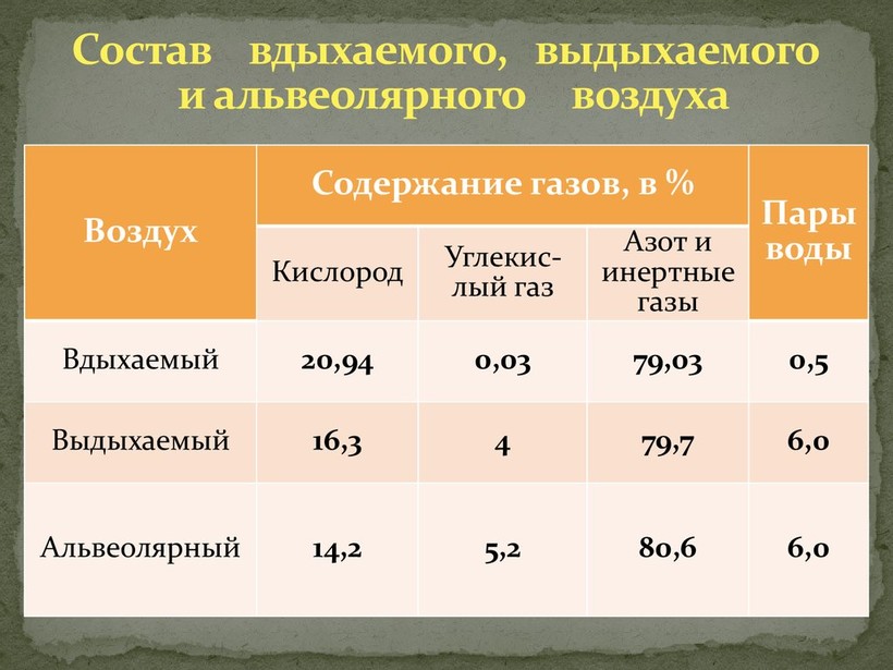 В легких человека процесс газообмена происходит в миллионах маленьких легочных пузырьков - альвеолах. Там же выдыхаемый воздух насыщается водяным паром, так как организм человека на 75-85% состоит из воды.