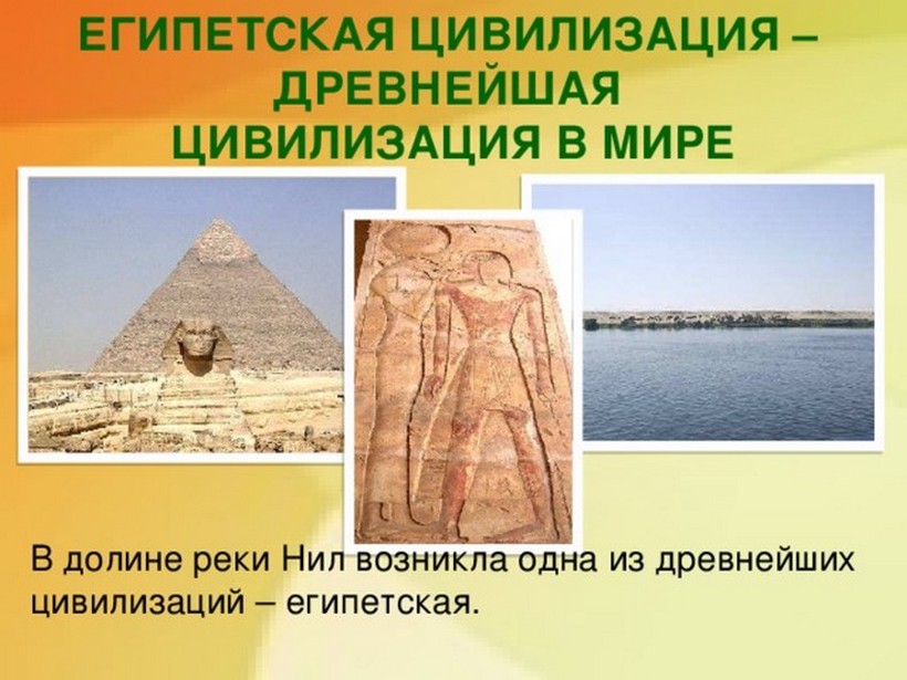 Если начать исследовать возрастной период древних цивилизаций, то старейшим представителем выступает древнеегипетская цивилизация. Удачное ее географическое расположение по берегам реки Нил дало неоспоримой толчок к прогрессу и подвигло египтян развивать свое общество.