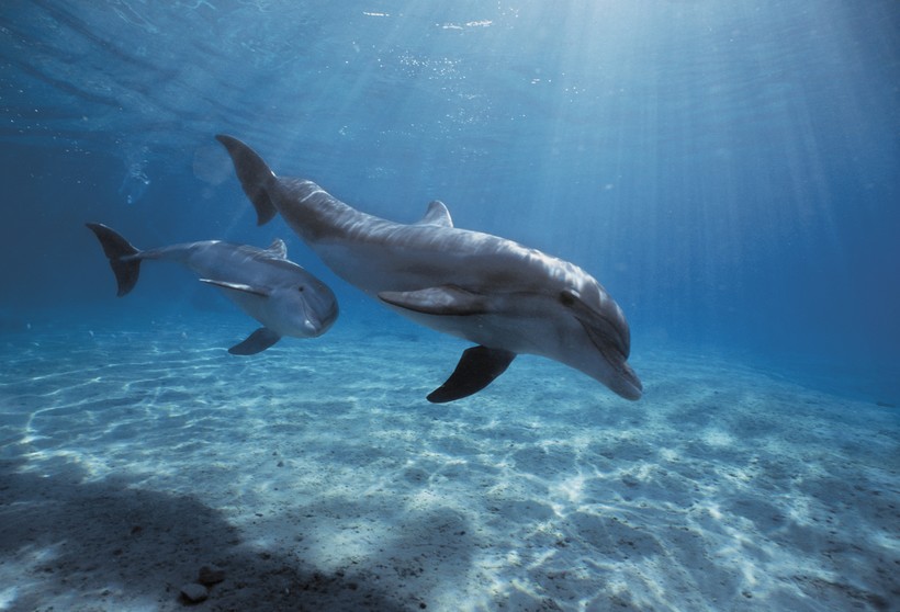 В процессе эволюции рыбы постоянно жили в воде, а вот дельфины, считается, выходили на сушу, но потом вернулись в воду. Из-за этого у них развился совсем другой орган, незаменимый в мутной воде, — эхолокатор. Принцип его действия основывается на том, что звуки, издающиеся дельфинами, отражаются от окружения и возвращаются обратно к дельфину, сообщая животному о том, что происходит вокруг. Сложно представить, какой объем информации приходится обрабатывать мозгу дельфина! Ученые считают, что именно это и обусловило его большие относительно других млекопитающих размеры, а не только более высокий интеллект.