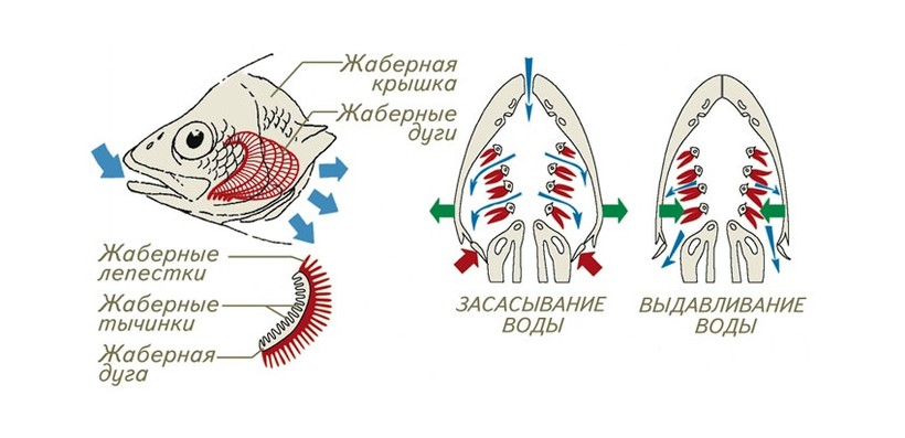 - При выдохе рот рыбы закрывается, а жаберные крышки поднимаются - вода выходит наружу.
