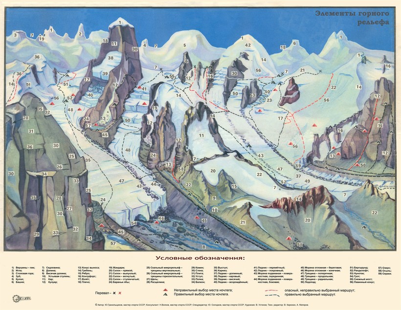 - Седловины (понижение между вершинами) и перевалы (самое низкое место в гребне).