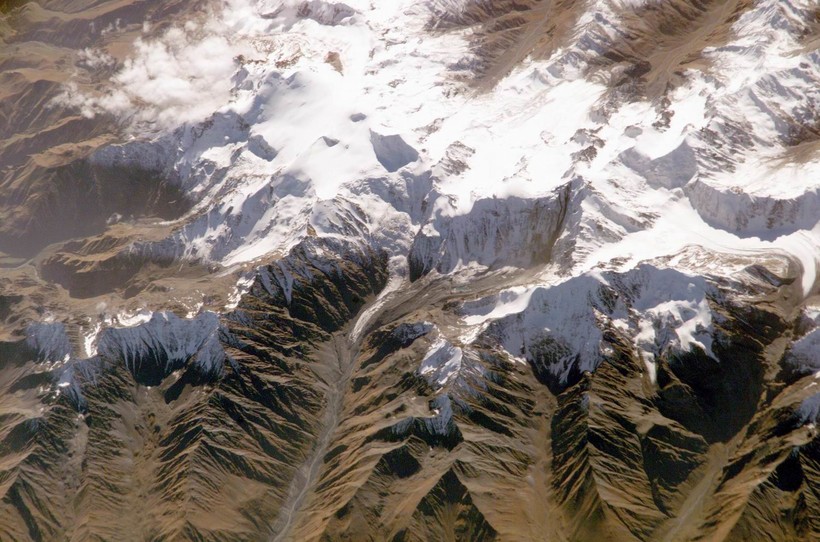 Наша туристическая группа возвращалась из Китая самолётом. Удалось насладиться пейзажами гор, как говориться, с высоты птичьего полёта, а, скорее всего, и выше. Я, оценив картину, выделила для себя характерные черты горного ландшафта.