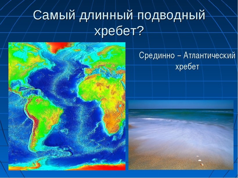Часто этот хребет называют разделительной чертой Атлантики, по которой проходит граница между Старым и Новым Светом. Он имеет длину около 18 000 км и протянулся почти по всему дну Атлантического океана, своей формой повторяя очертания окружающих его материков. Поэтому он похож на извивающуюся змею. Формирование хребта началось в триасовый период после расхождения тектонических плит. Сам хребет делится на шесть более мелких хребтов (частей):