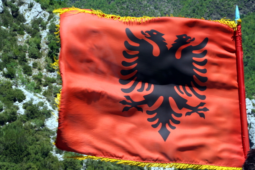 Албанский флаг состоит из красного полотнища, на котором в центре изображен черный двуглавый орел.