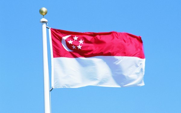 Флаг Сингапура состоит из двух одинаковых по размеру горизонтальных полос - верхняя полоса красного цвета, а нижняя белая. На левой стороне красной полосы расположен белый полумесяц с пятью белыми пятиконечными звездами справа от полумесяца.