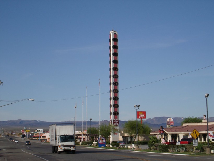 - так американский город Бейкер украшает электронный термометр высотой 40 метров;