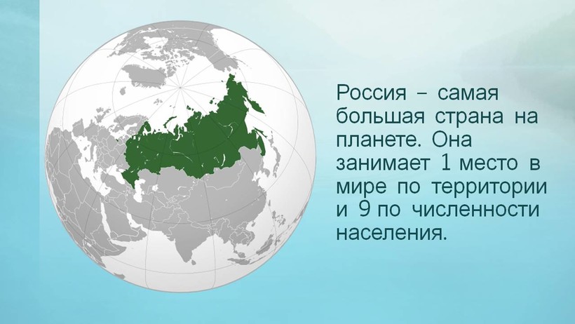 Мне приятно осознавать, что я родилась в самой большой стане, что «много в ней лесов, полей и рек». Хотя наша страна раскинулась на многие километры, её территории омывают не все имеющиеся на планете океаны.
