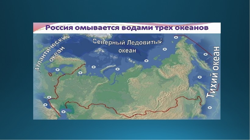 Россия занимает огромную территорию в мире. Неудивительно, что ее границы омывает целых три океана: