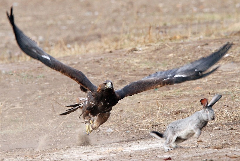 - птицы питаются падалью (стервятники и грифы), пустынный ворон и беркут охотятся на грызунов;
