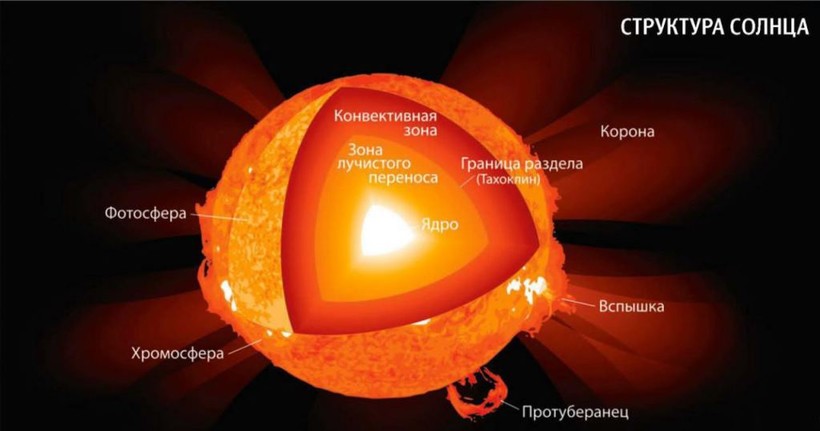 - температура. Температура короны составляет около 1500000 градусов; ядра – 13500000 градусов; температура по Цельсию на поверхности - 5726 градусов. Нам трудно представить такие цифры, никакая техника человечества не сможет подлететь к нему, не говоря о самих людях, так что все, что мы знаем, вытекает из математических формул и наблюдений.