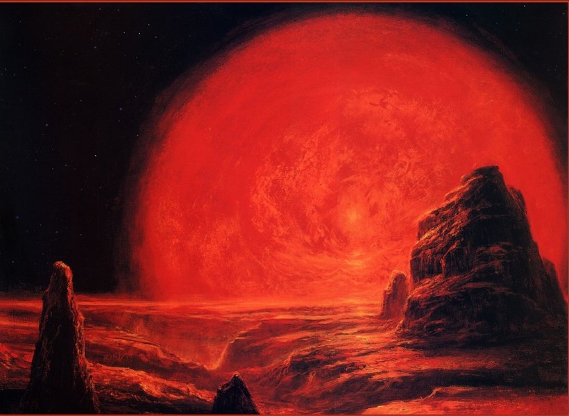 Примерно через 4,5 млрд лет, водород в солнце постепенно будет преобразован в гелий, после того как водород будет исчерпан, гелиевое ядро станет плотным и горячим на столько, что начнётся реакция по превращению гелия в углерод, вспыхнув внешняя оболочка раздуется в 200 раз, достигнув орбиты Венеры и вероятно поглотит землю, солнце превратится в Красный гигант. Пробыв в стадии красного гиганта около 100 миллионов лет, солнце станет белым карликом.