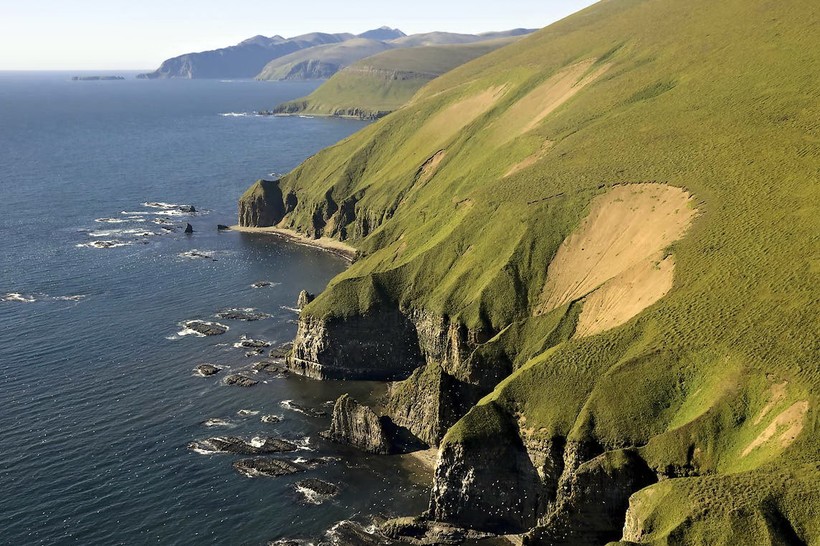 Приятно, что среди претендентов есть еще одно примечательное место родного края – Командорские острова. Я бывал там на экскурсии. Добирались на самолете. Он тут - главный вид транспорта. Береговая линия островов похожа на норвежскую, с глубокими заливами-фьордами. Высокие, покрытые травой зеленые скалы резко возвышаются над морем. Здесь проживают алеуты, чтущие свою древнюю культуру.