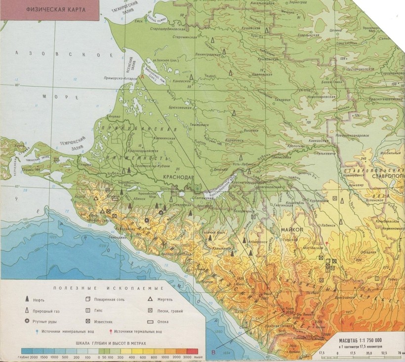 Если посмотреть на физическую карту края, то видно, что на юге расположился Большой Кавказ, а всё, что севернее него — Прикубанская равнина, форма которой неоднородная, поэтому она условно разделена на Приазовскую дельтовую и Кубано-Приазовскую низменности, а также Закубанскую наклонную равнину. Последняя проходит полосой у подножья гор и на востоке ограничена Ставропольской возвышенностью.