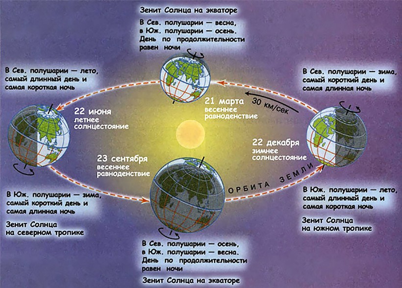 Смешно, но я долго считала, что существование времен года — это результат околосолнечного вращения Земли. А потом узнала, что это только одна из причин. Основные причины смены времен года:
