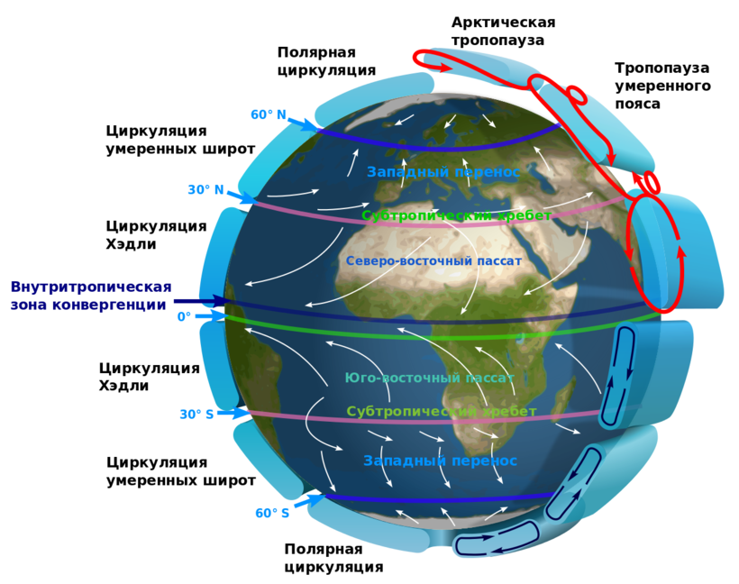 - в атмосфере зарождаются вихри разного масштаба, включая циклоны с антициклонами;