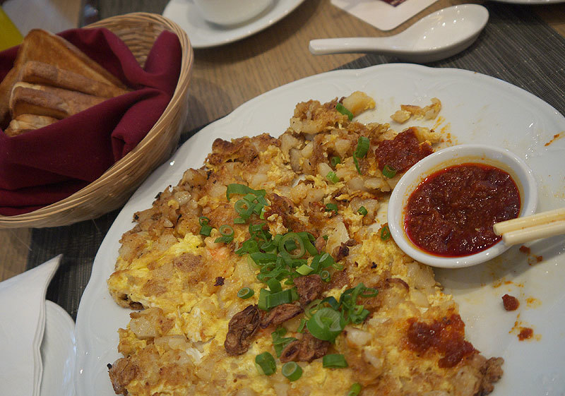 Верх украшают соленым редисом chai poh и чили. Продажи этого блюда падают, ведь молодое поколение не желает продолжать эту традицию, так что попробуйте его сейчас, до того, как оно исчезнет навсегда.