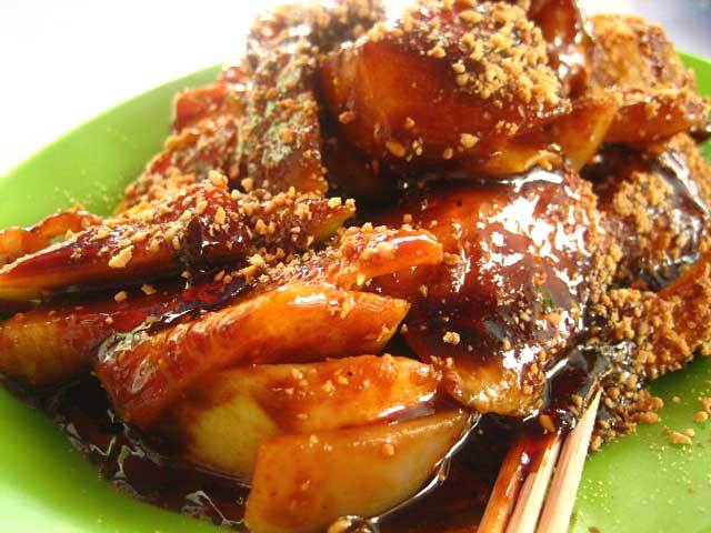 А это типичный завтрак в Сингапуре и Джохоре (штат Малайзии), ведь большинство тамошних лавок открываются по утрам и закрываются к обеду. При приготовлении этого блюда смешивают рисовую муку с водой, чтобы получился пирог, затем разрезают его на маленькие кусочки и пропаривают, чтобы придать ему традиционную округлую форму.