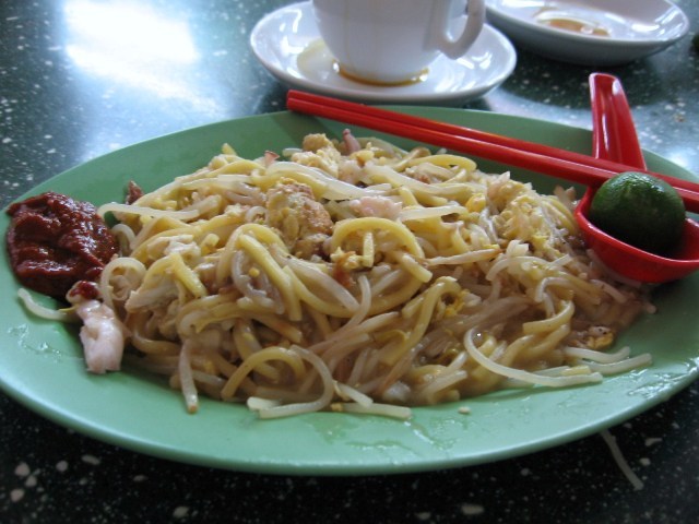 Они собирались на Рочорской улице и жарили оставшуюся с завода лапшу. Другой вариант этого блюда легко спутать с одноименным блюдом (Hokkien Char mee),в котором используют только одно яйцо для лапши и поливают ее темным густым соусом.