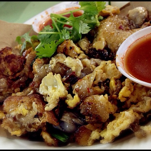Картофельный крахмал смешивают с жареными яйцами, что придает блюду непревзойденный вкус. Похожие блюда готовят без крахмала, вместо этого туда добавляют больше яиц, потому этот вариант так ценится. Особый уксус с чили в Сингапуре используют исключительно с устричным омлетом.