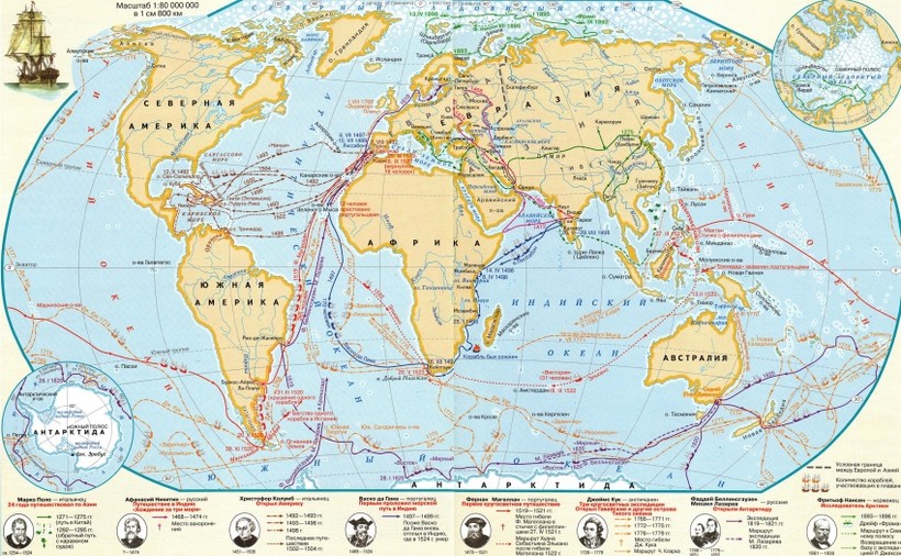 - Великие географические открытия — практическое подтверждение теории о шарообразной Земле. Открытие Америки, плавание Магеллана и другое;