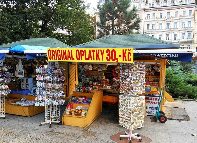Одна вафля стоит 30–35 CZK (98–115 ₽), подарочный набор для друзей с оплатками разных вкусов вы можете собрать самостоятельно. Дополнить вафли с начинкой можно маленькими шоколадками «Кошачьи язычки», которые стоят 15 CZK (50 ₽).