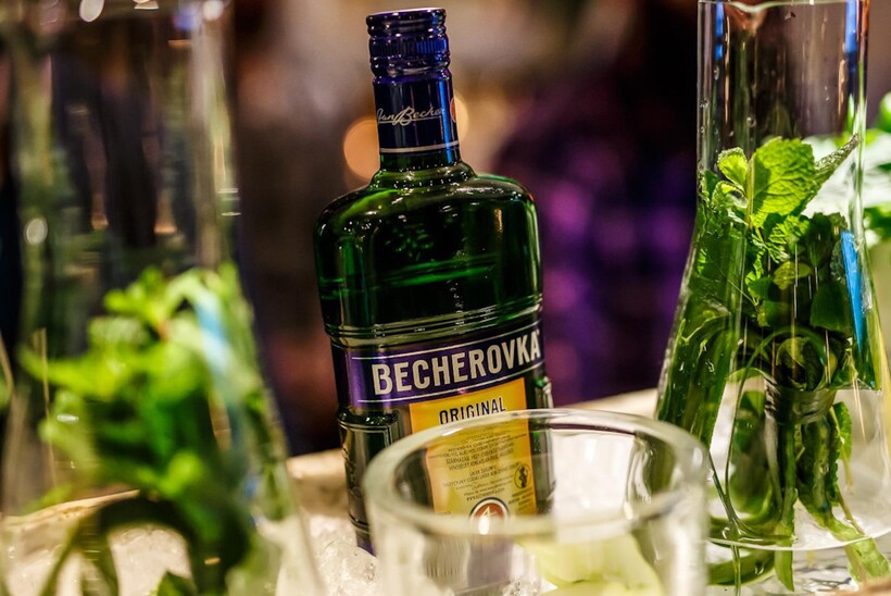 - Becherovka KV 14 — в самый крепкий (40 % алкоголя) и горький сорт ликера добавляется красное вино.