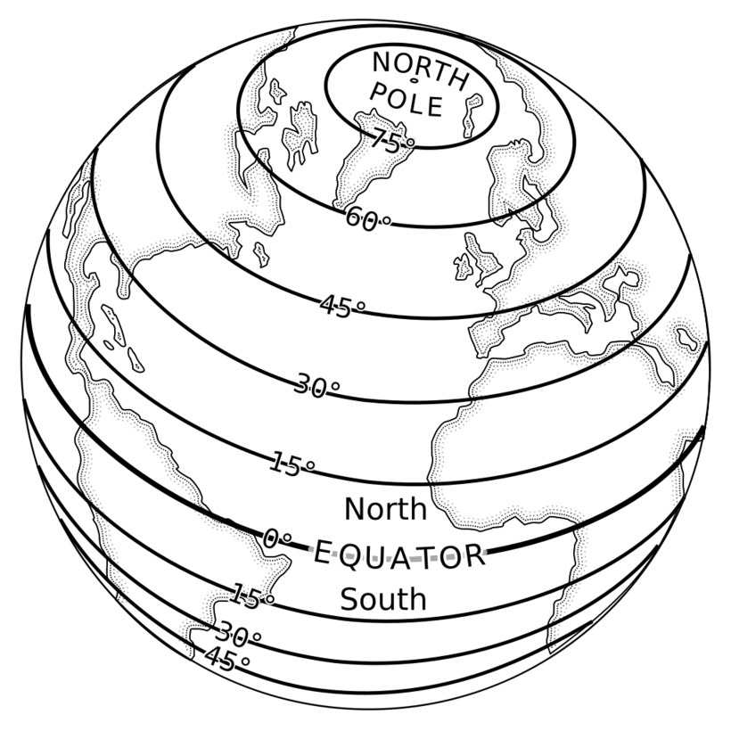 Географическая широта показывает, насколько далеко от экватора расположена параллель, на которой находится обсуждаемая точка.