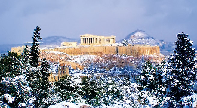 В ноябре уже не будет безоблачной летней погоды. С ноября по февраль тут очень влажно и неожиданно может стать холодно. Снег обычно выпадает на материке, в горах Эвбеи и Крита; иногда снег идет в Афинах. Но бывают и солнечные дни, и некоторые туристы выбирают безмятежность, которая царит в это время года.