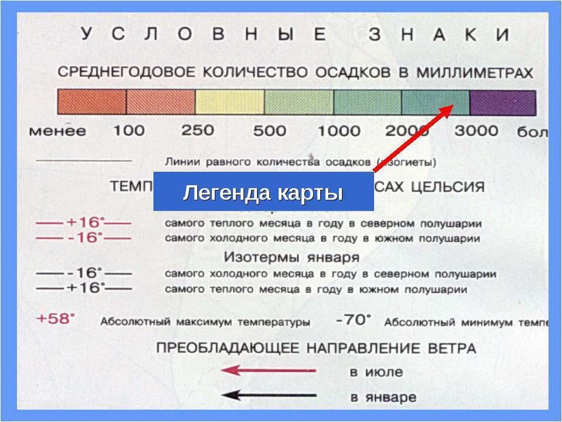 - во-вторых, некоторые вещи становится тяжело воспринимать без графического выделения, например, условные обозначения на климатических картах и картах природных зон;