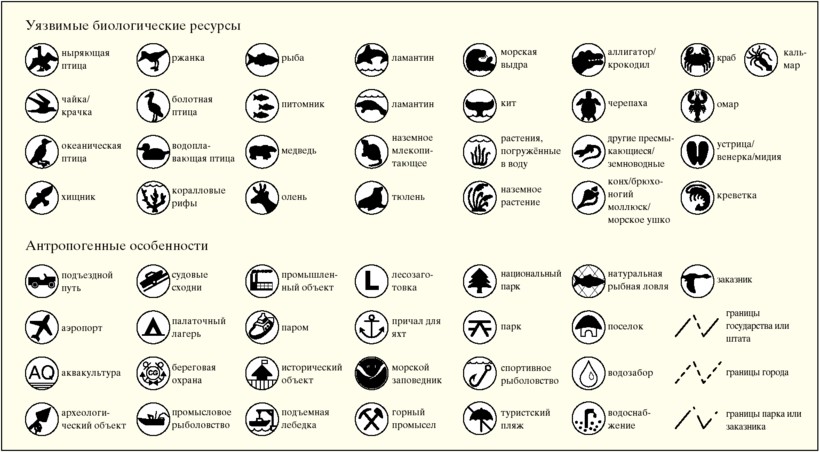 Также можно выделить экономические, демографические, экологические и другие виды условных обозначений, относящиеся к той деятельности человека, для которой карта и разрабатывается. Моими фаворитами в школе были карты почв, растительности и животного мира с нескучными попытками изобразить коалу или кенгуру.