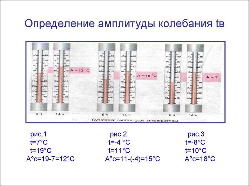 В обоих случаях обращают внимание на разницу между самой низкой и самой высокой температурами воздуха. Это и есть амплитуда.